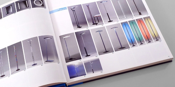 Das zentrale Printmedium zur Vermittlung des umfangreichen Produktsortiments war der Leuchtenkatalog, den wir hier vorstellen. Bei der Konzeption dieses Werkes ging es darum, für Planer und Architekten ein Werkzeug zu entwickeln, bei dem die jeweiligen Spezifikationen und Anwendungsmöglichkeiten der Beleuchtungslösungen schnell und übersichtlich erfassbar sind.